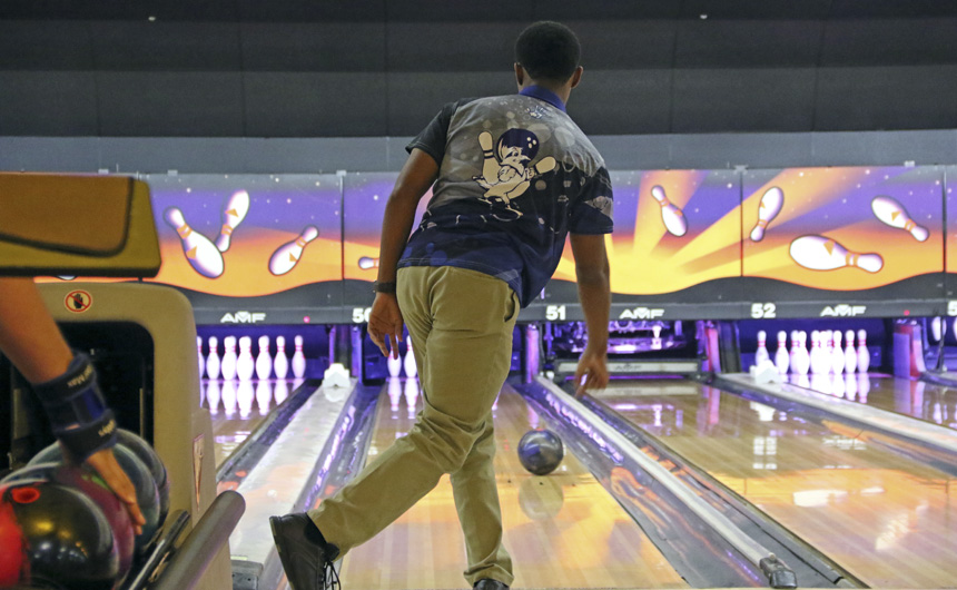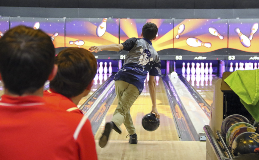 The competition watch as junior Jake Stiegler bowls his way to a strike. -