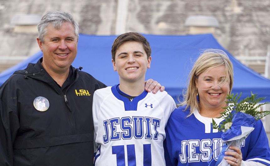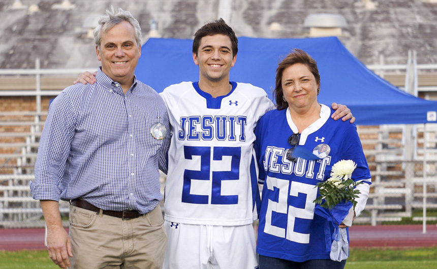 Senior Peyton Queyrouze (22) with his parents Steve and Anne -
