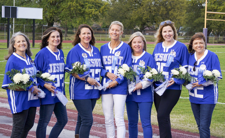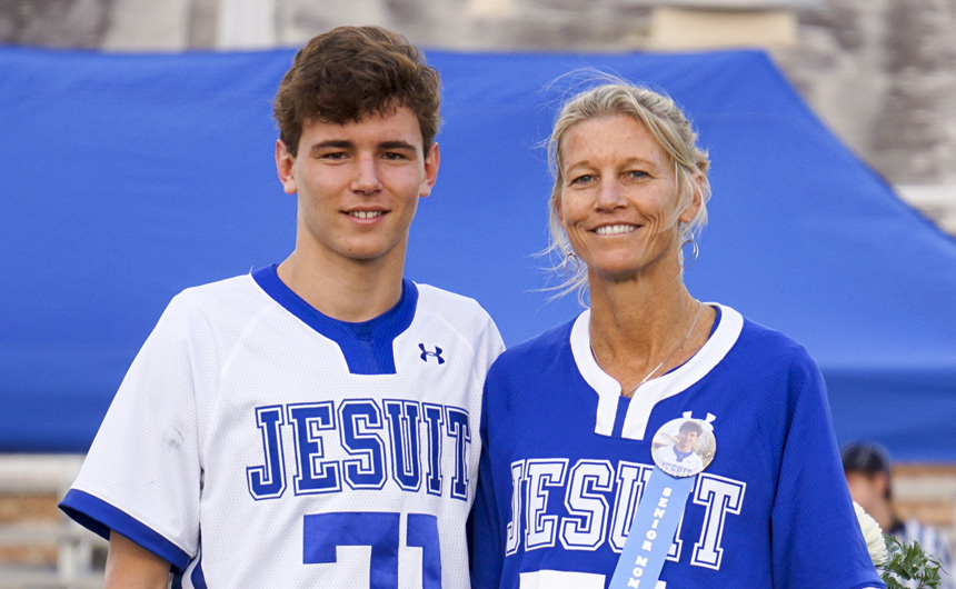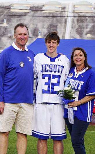 James Bradford (32), William Simon (10), Colin Haag (14), Ryan Hamilton (23), Aidan Roberts (21), Parker Edwards (15), and Peyton Queyrouze (22) represent the Jesuit lacrosse team’s senior class.