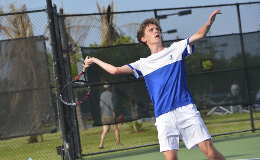 Jesuit’s tennis team stayed unbeaten in local play, winning a pair of matches at UNO on Tuesday, April 3.