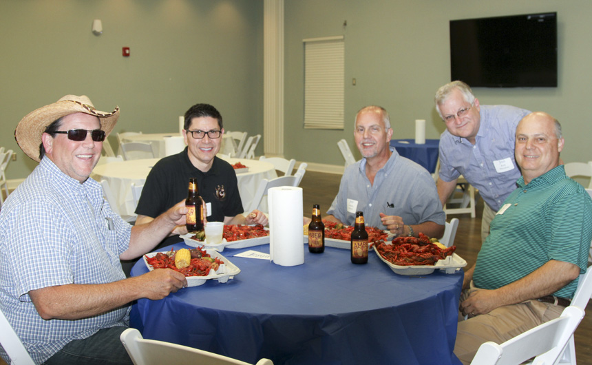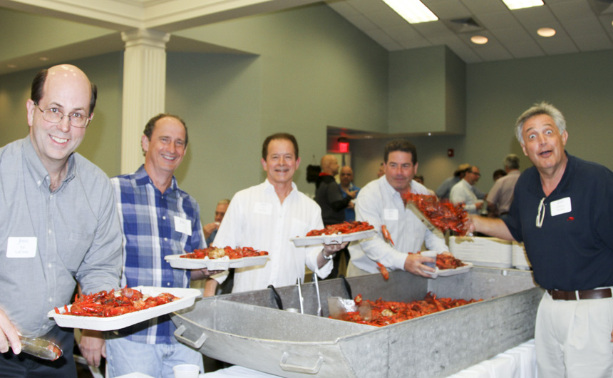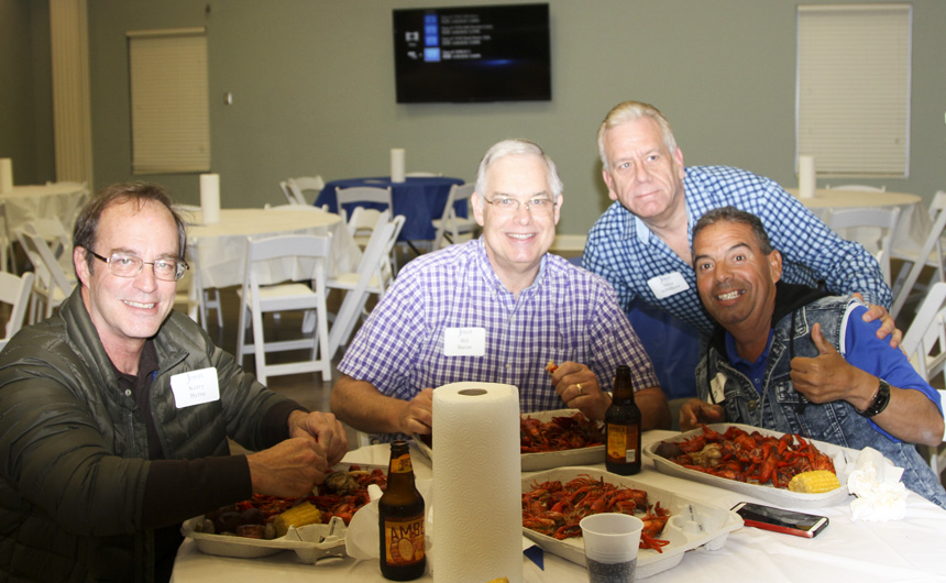 First, the guys met on Friday evening at Lakeside Country Club for a good old New Orleans crawfish boil. Then on Saturday evening the Jays and their wives/dates enjoyed a cocktail reception at the beautiful home of Gerry and Heidi Cvitanovich. Of course, the event featured the cuisine of the Cvitanovich family’s Drago’s restaurant. Before heading to the Cvitanovich abode, several couples attended a reunion Mass celebrated by Fr. John Brown, S.J., in the Holy Name Chapel. All in all, it was a great weekend of fellowship and Blue Jay Spirit.
