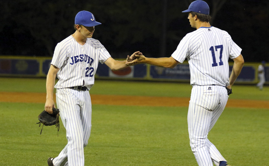 The Jesuit baseball team suffered a heartbreaking 9-8 loss to St. Paul’s on Saturday night (May 5) in the Game 3 elimination game, which sent the Wolves to the semifinal series and sent the Blue Jays home. The thrilling contest played on Heap Field at St. Paul’s lasted more than four hours, as it took 12 innings to finally break the stalemate. NOLA.com called it “one of the craziest games one will ever see in high school baseball.”