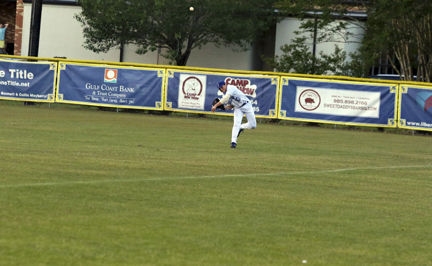 St. Paul’s worked quickly out of the top half of the first extra inning, the 8th, and took to the plate with determination. The Wolves loaded the bases with just one out on Jesuit’s Shane Lanson, which brought in reliever Collin Miller. When St. Paul’s batter hit the ball into right field, it seemed deep enough to be the game-winning sacrifice fly. It did not seem that way for pitcher/right fielder Will Moran.