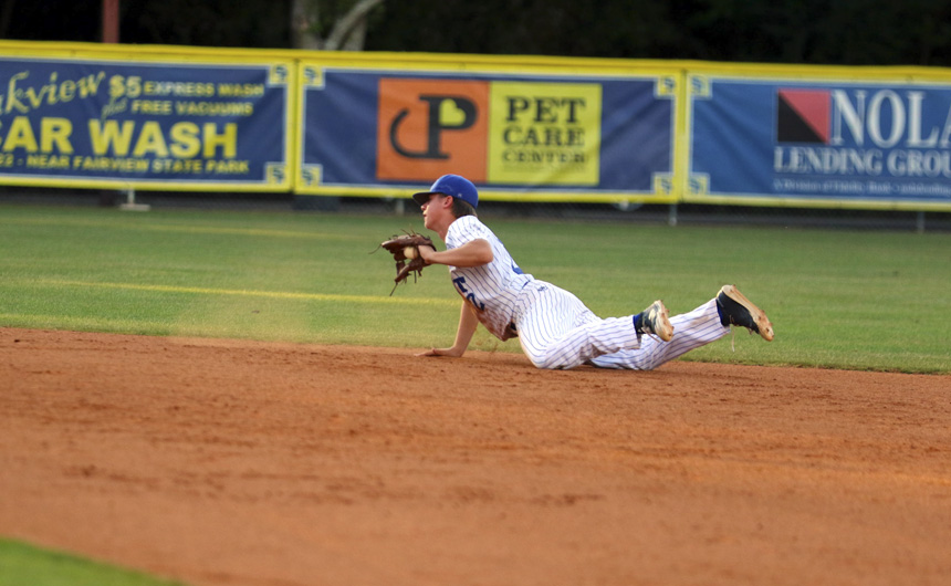Matt Alexander makes the diving play at second. -