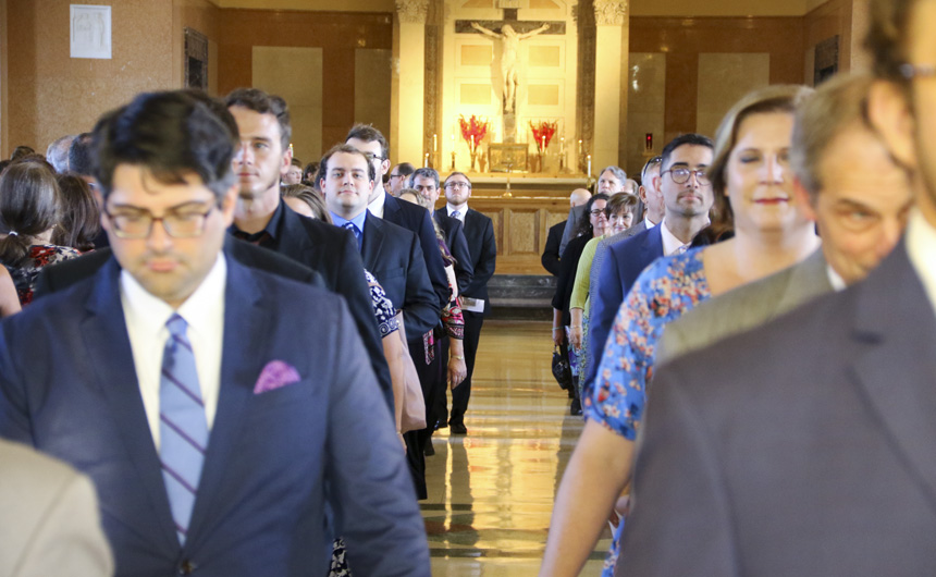 The Seniors recess out of the Chapel of the North American Martyrs for the last time as Jesuit students. -