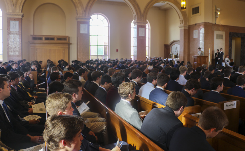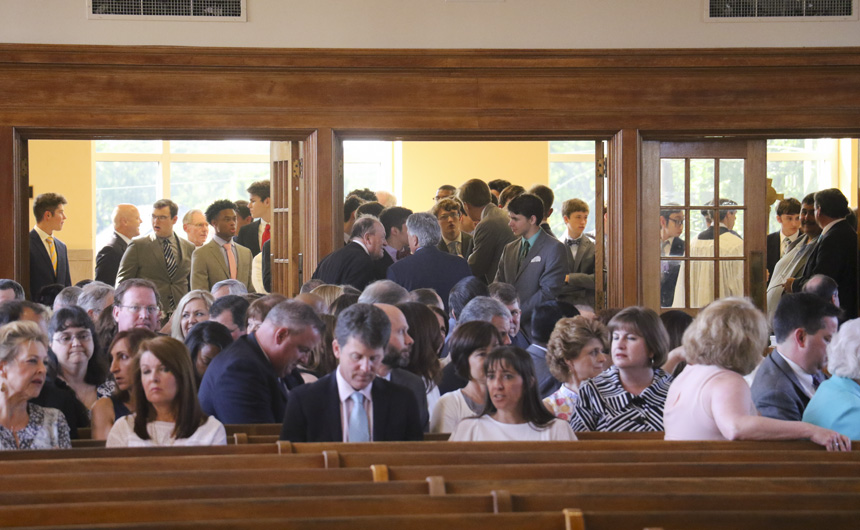The chapel is packed with seniors, their parents, faculty, and staff. -