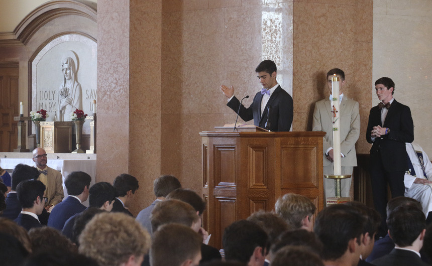 Senior Leo John Arnett delivers the first reading. -