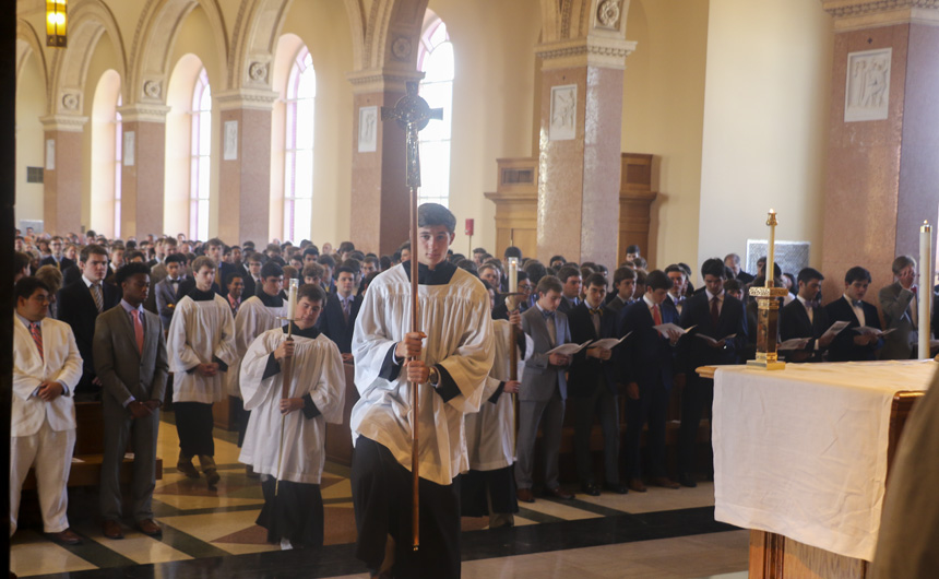 The seniors process in for their last mass as Jesuit students. -
