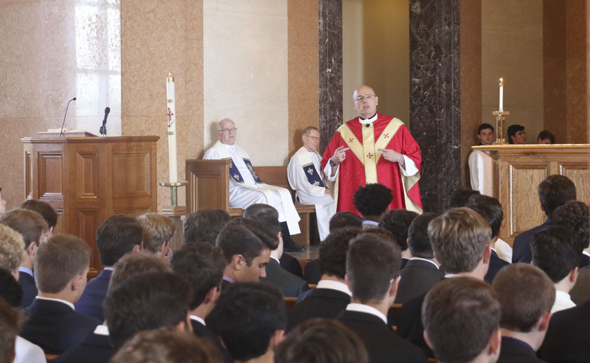 The Mass was celebrated by Jesuit president Fr. Christopher Fronk, S.J. He was assisted by school chaplain Fr. Kevin Dyer, S.J., and Frs. Paul Shaughnessy, S.J. and Donald Saunders, S.J.