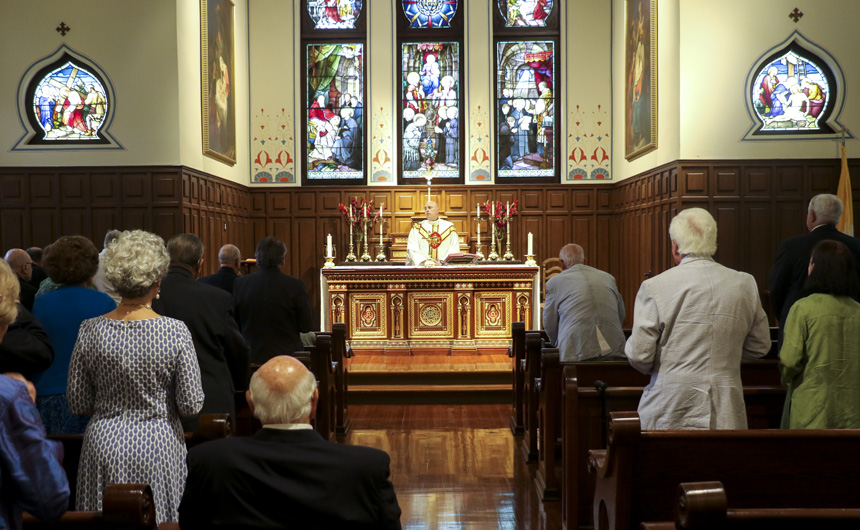 The 70+ year reunion began with Mass in the Holy Name Chapel, celebrated by Jesuit president Fr. Christopher Fronk, S.J. -