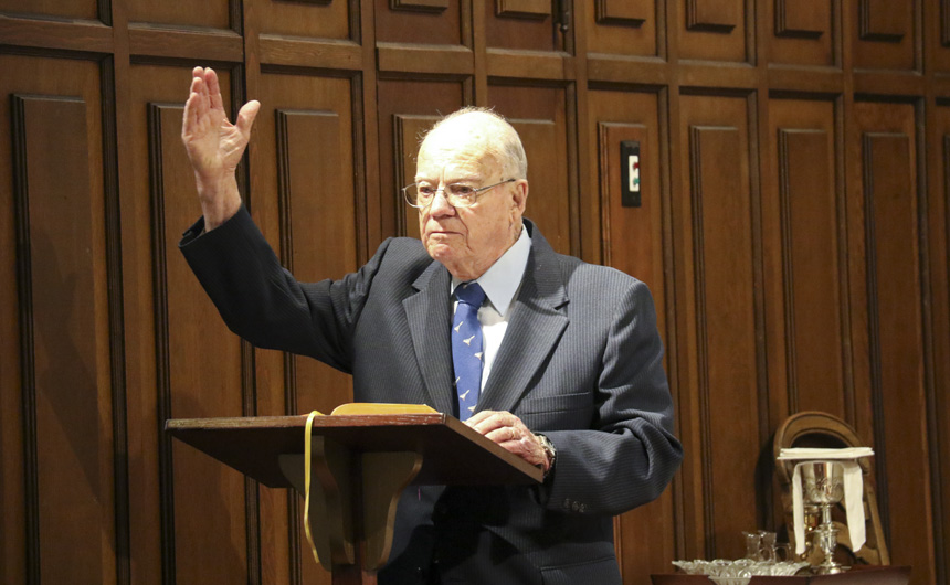 Buddy Lazare '43 leads the congregation in the Responsorial Psalm. -