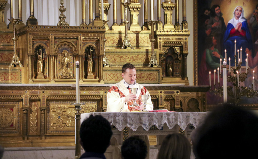 Jason LaLonde offers Mass at the Jesuit Church on Baronne St. -