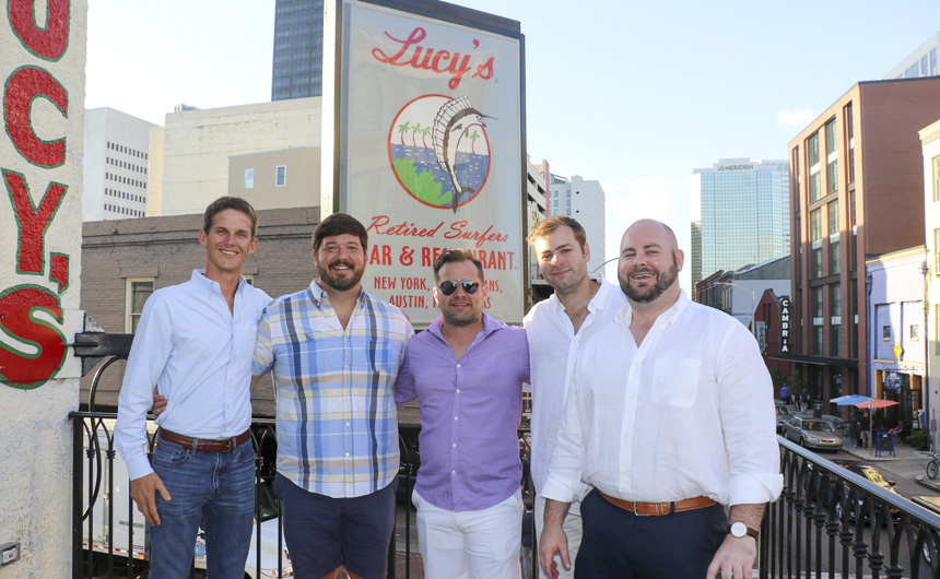 The Class of 2003 Reunion Committee—Michael Alfortish, Ian Blanchard, Jake Malone, Travis Garrison, and George "G" McGregor -