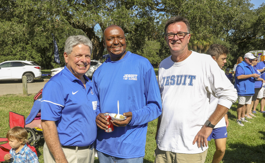 On Saturday, Oct. 13, alumni who donned the blue and white singlets years ago as members of the Jesuit cross country (CC) team, came together to celebrate their bond with today’s program. The Jays met at the City Park course, first to cheer on the current runners in the city-wide Allstate Sugar Bowl Cross Country Classic and then to enjoy a reception at which they caught up with each other and met the team of 2018. The team finished ninth of 28 teams.
