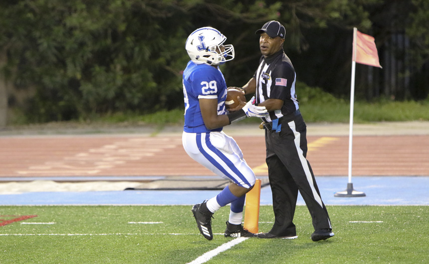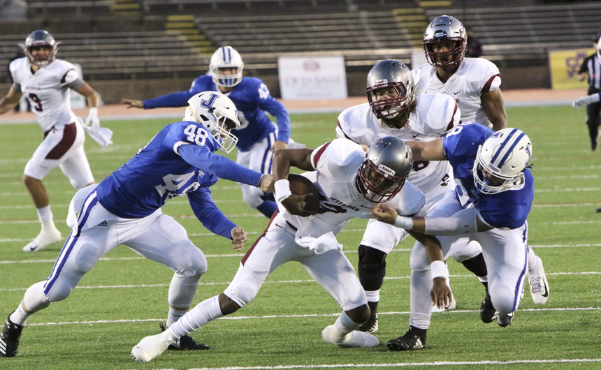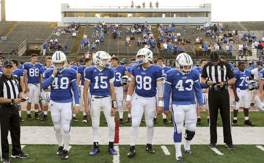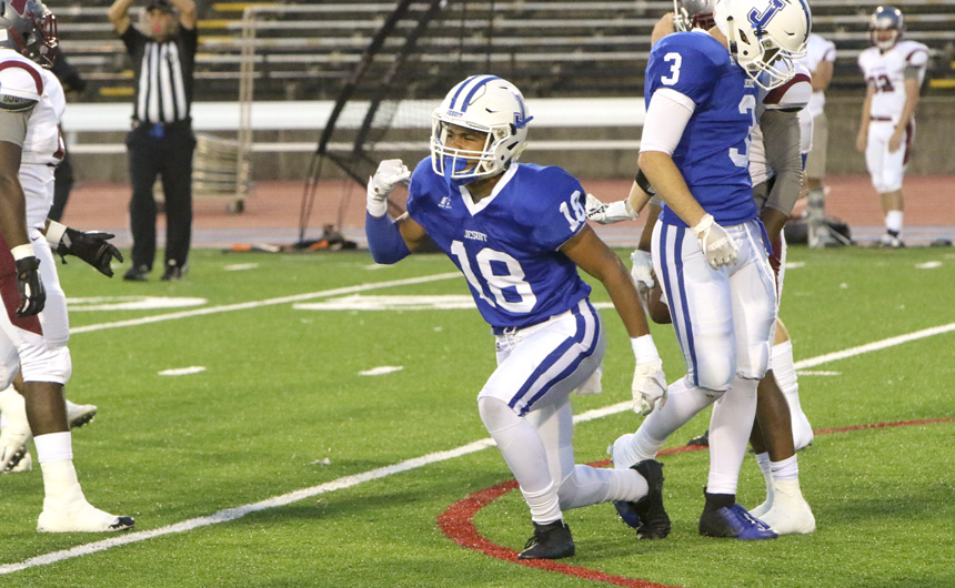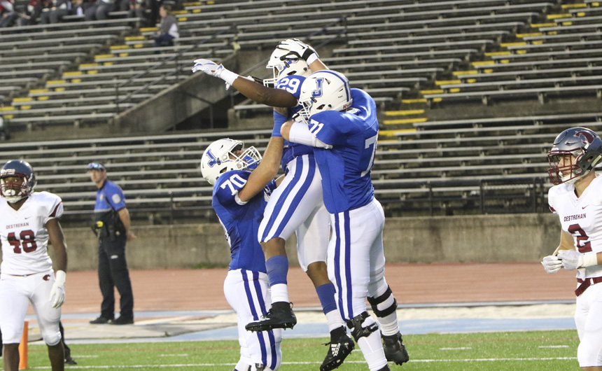 In a hard-fought non-district battle, the Jesuit football team fell to the Wildcats of Destrehan, 28-23, on Friday night at Tad Gormley. The Wildcats (8-1) scored two 60-yard touchdowns in the third quarter, but the Blue Jays (5-4, 3-2) mounted a serious comeback in the fourth quarter with two red-zone scores.