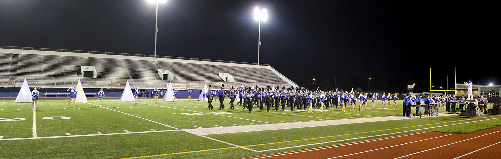 The band processes onto the field for the big show. -
