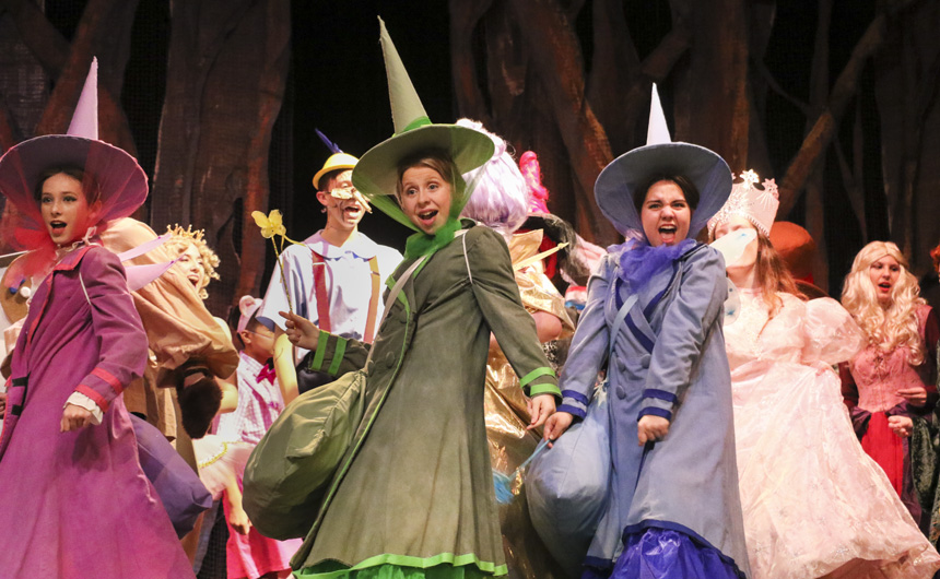 Throughout the ensemble, the colorful fairy tale characters are brought vividly to life by students from pre-freshmen to seniors, as well as several younger “Future Phils,” who ensure that the “Awww” factor remains high.