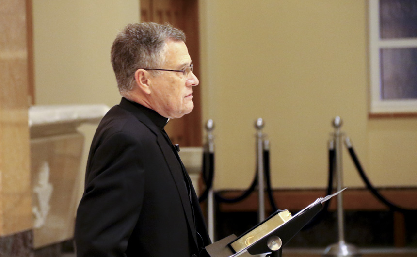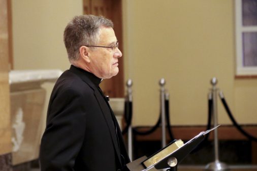 Fr. John Brown, S.J., raises the Eucharist. -
