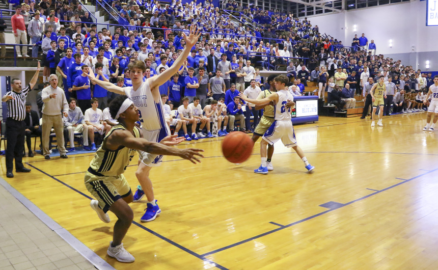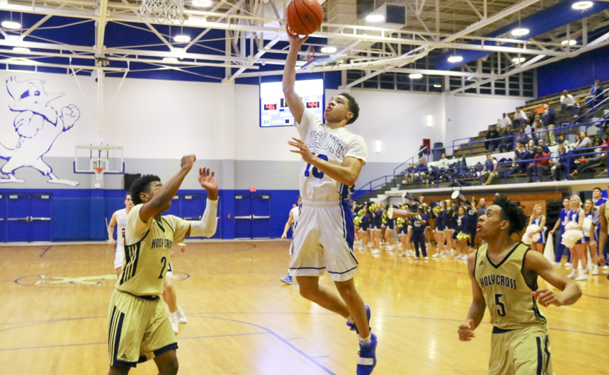 The Blue Jay basketball team (21-3, 2-1) played an inspiring 1st Quarter in their district match-up on Tuesday night against Holy Cross. Shots were falling, defenders were forcing turnovers, and a spirit of confidence filled the Birdcage as the Jays shot ahead of the Tigers 20-4 in the opening period of play.