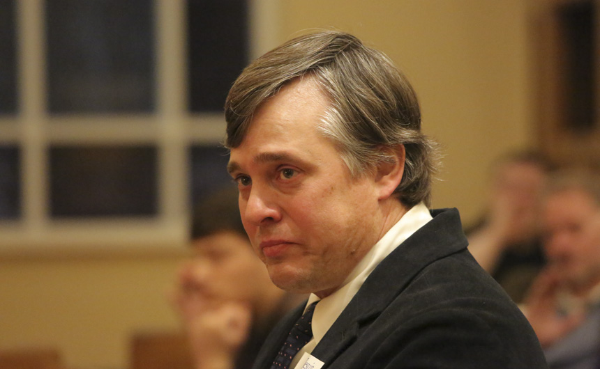 Brian Bent '89 shows emotion while his son speaks about their strong relationship. -