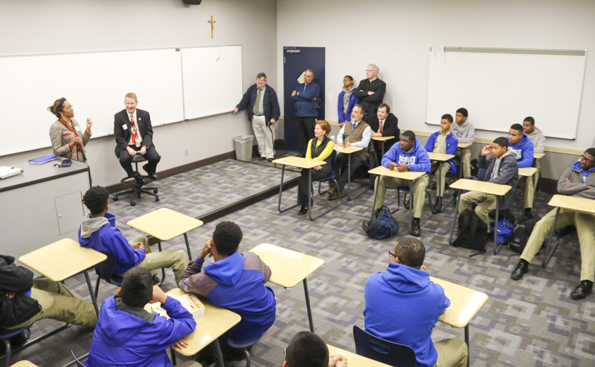 The St. Peter Claver Club presented its quarterly speaker series on Thursday, Jan. 31, to a packed house of students and faculty in Room 210.