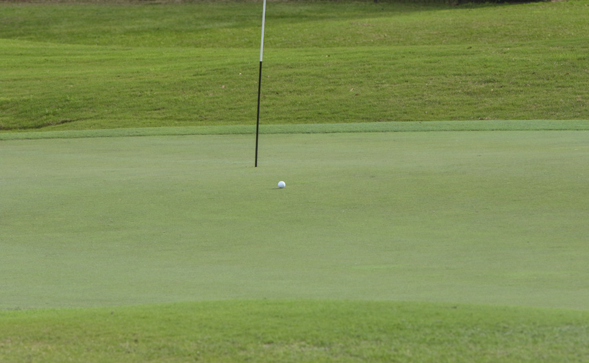 Freshman Morgan Hebert makes a knee-knocker putt on the 9th hole in the final group to help Team 2 tie Brother Martin’s starting team.