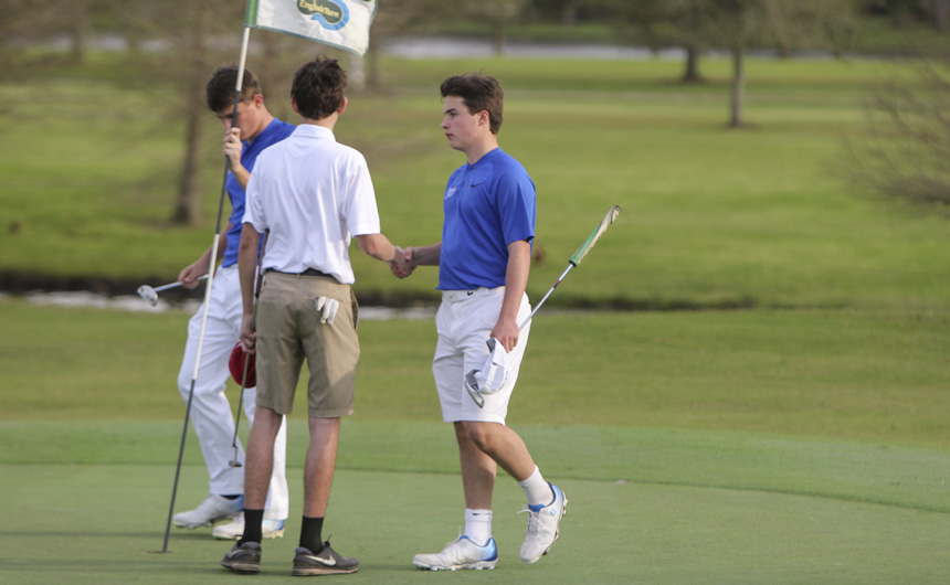 The Blue Jays played their first 9-hole match of the spring season Tuesday against the Brother Martin (BM) Crusaders at English Turn. Team 1 defeated Br. Martin with a score of 161 to the Crusaders’ 174. Team 2 tied BM’s first team, 174-174. Freshman newcomer Taylor Boasberg led the way for Team 1 with a two-over round of 38. Junior Andrew Barreca led Team 2 and all scorers with a one-over 37. Freshman Morgan Hebert, also a first-year player, controlled his nerves on the final hole to make a knee-knocker putt that prevented JHS Team 2 from losing by a stroke.