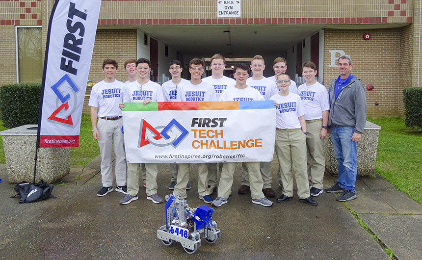 On March 16, the Jesuit Robotics Team #6448 competed against 19 other teams from the Louisiana region winning high honors and 1st in competition at the Louisiana FIRST® Tech Challenge (FTC) State Regional Championship hosted at Destrehan High School.