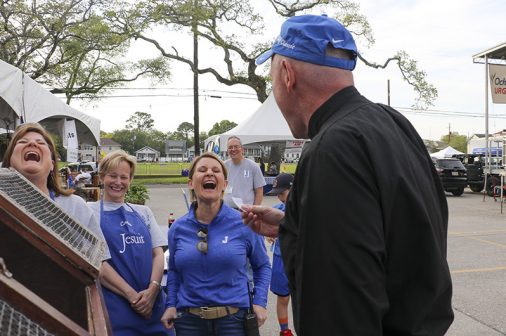 The party started on Friday night with Lenten seafood selections and music by the Bucktown All-Stars. The MCJROTC kicked things off with a presentation of the colors and the playing of the national anthem for the opening ceremonies. Guests were greeted with goodies by a crew of volunteers at the all-new Welcome Tent. Alumni received a coupon for a free soft drink or water, new students were given Jesuit gear, current students enjoyed complimentary french fries, and Jesuit faculty and staff were treated to 10 dollars in Blue Jay Bucks.