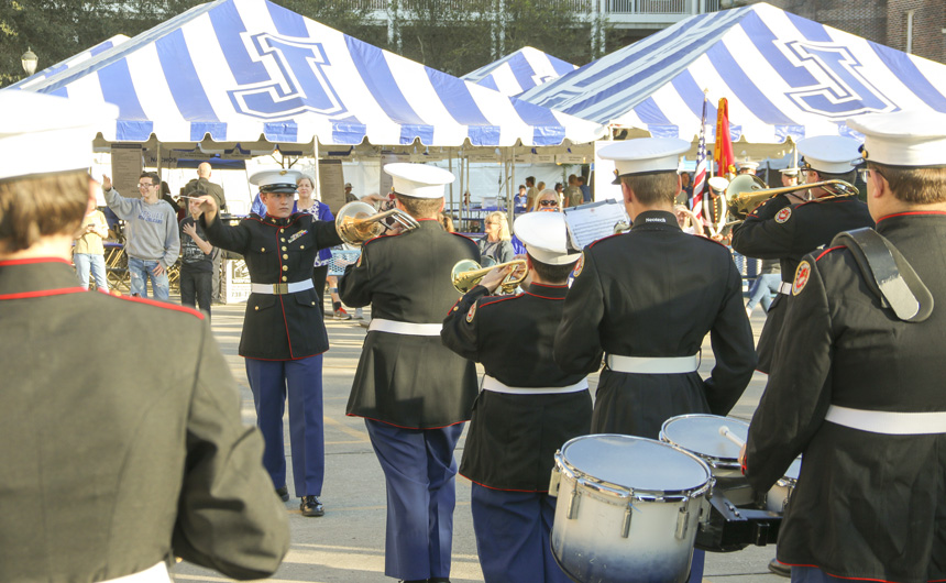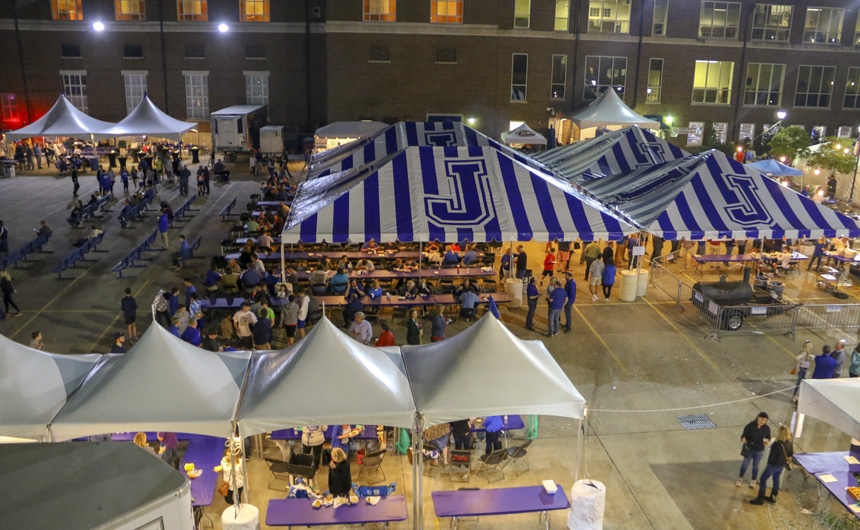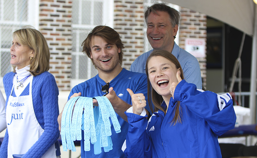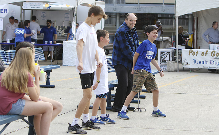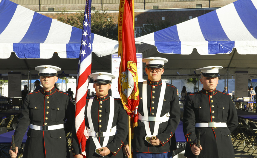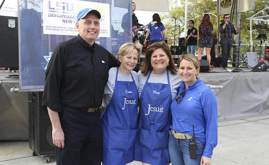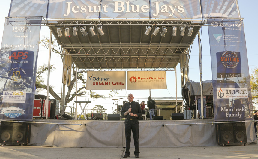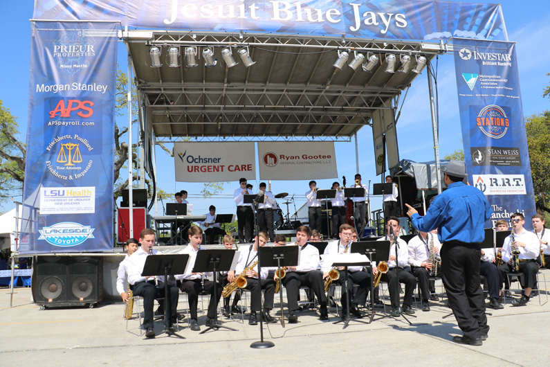 The party started on Friday night with Lenten seafood selections and music by the Bucktown All-Stars. The MCJROTC kicked things off with a presentation of the colors and the playing of the national anthem for the opening ceremonies. Guests were greeted with goodies by a crew of volunteers at the all-new Welcome Tent. Alumni received a coupon for a free soft drink or water, new students were given Jesuit gear, current students enjoyed complimentary french fries, and Jesuit faculty and staff were treated to 10 dollars in Blue Jay Bucks.