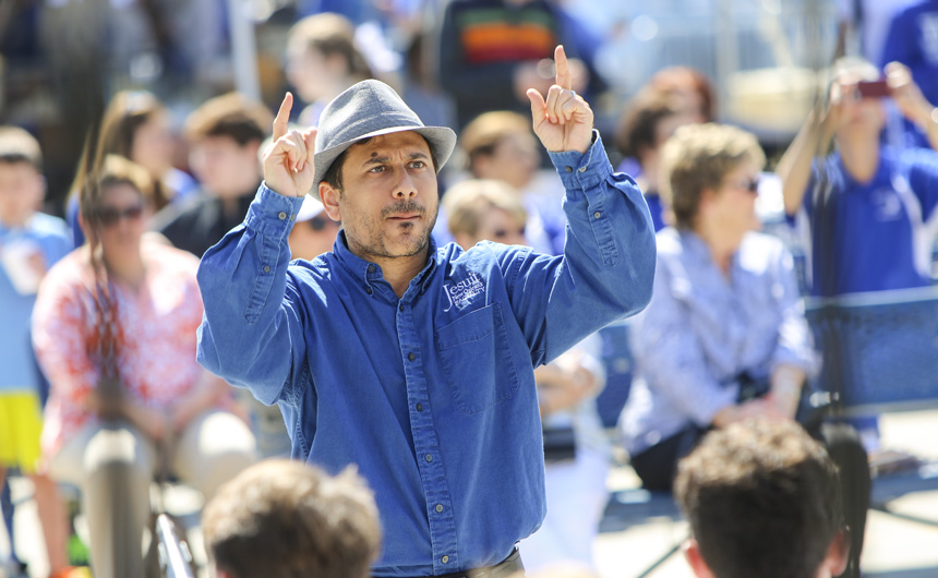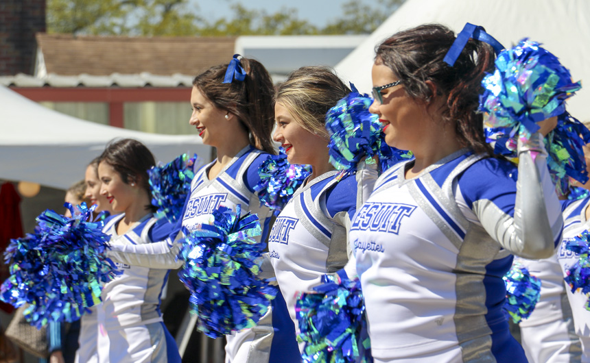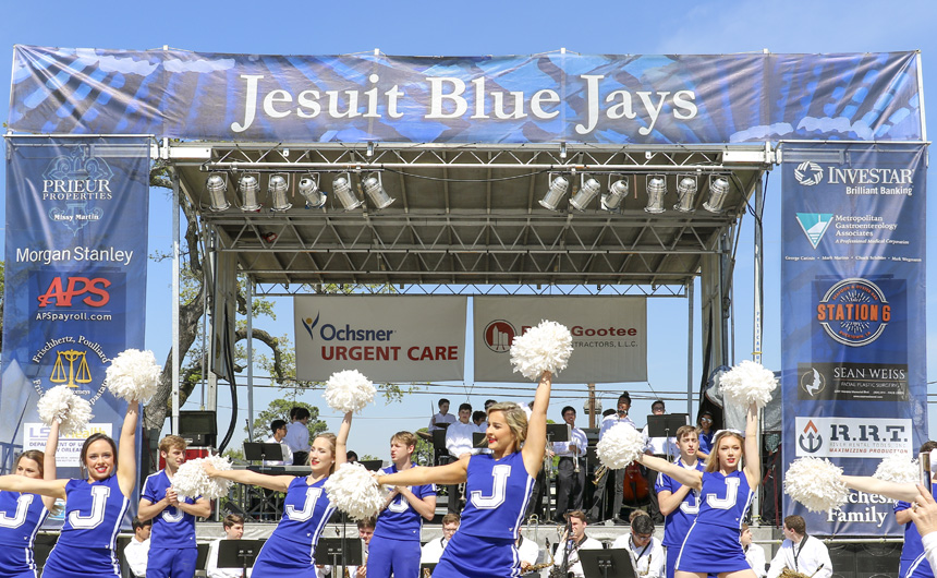 Then on Saturday, Bazaar-goers returned to soak up the sun and enjoy a day full of the joys of spring. Confetti lined the pavement and music filled the air at Carrollton and Banks. The Jesuit cheerleaders and Jayettes wowed the crowd with their spirited routines; the Jesuit Jazz Band kept things cool with their stylish repertoire. The afternoon featured a fierce student volleyball competition, from which Homeroom 1208 walked away as champions. The Philelectic Society gave a sneak peak of their spring musical Into the Woods before the J-Troup had the audience in stitches with their improv comedy set. The fun continued well into the afternoon as the band After Party took the stage to close out the festivity.