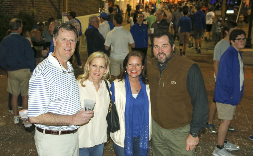 Andy and Anne Black, joined by Amy and Mike McMahon '85, stand among the hundreds of Bazaar attendees surrounding Traditions Courtyard. -