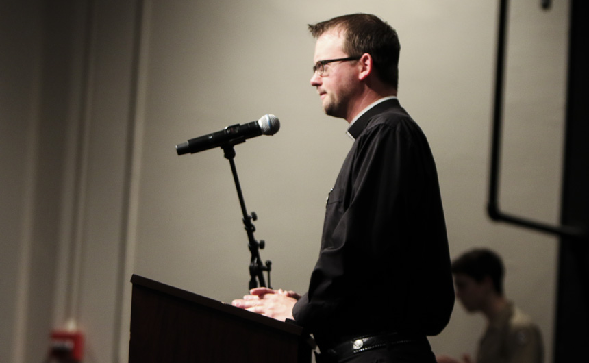 Fr. Kevin Dyer, S.J., leads the invocation. -