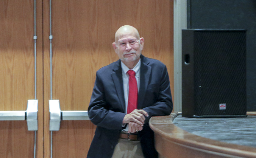 Current member of the executive board, senior executive aide Charles Korndorffer, introduces the assembly. -