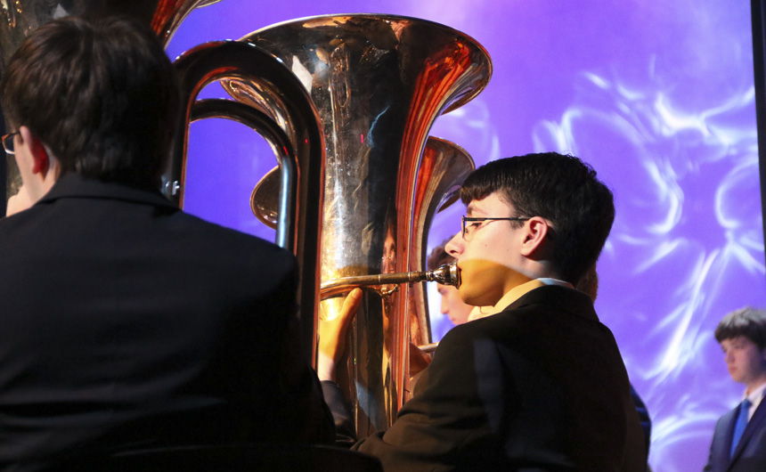 Freshman Taylor Trepagnier on the Tuba. -
