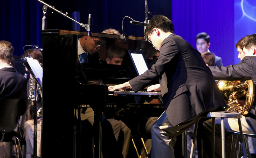 Senior Christopher Vuong on the piano. -