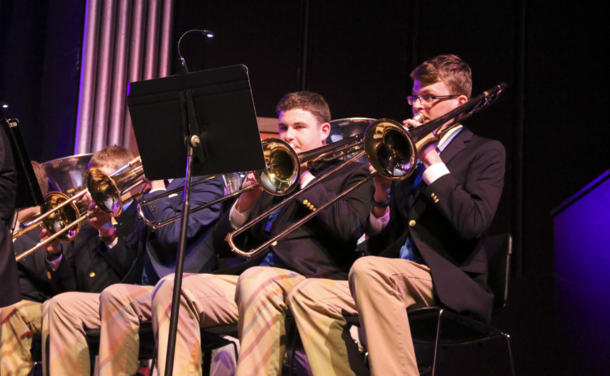 An excited crowd filtered into the Jesuit auditorium for the Blue Jay Band’s annual Spring Concert and Awards Ceremony on Saturday, April 27. Band director Mr. Joe Caluda ’79 led the concert band and associate band director Mr. Jason Giaccone led the jazz band performances.
