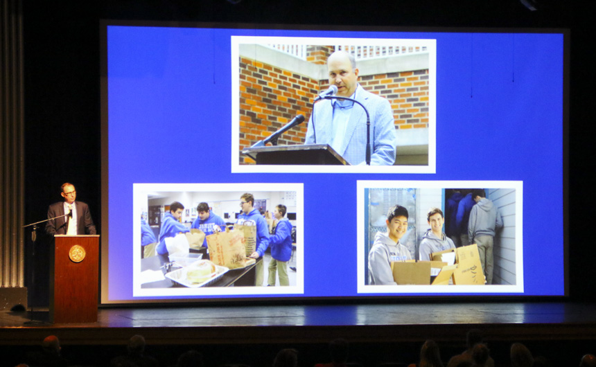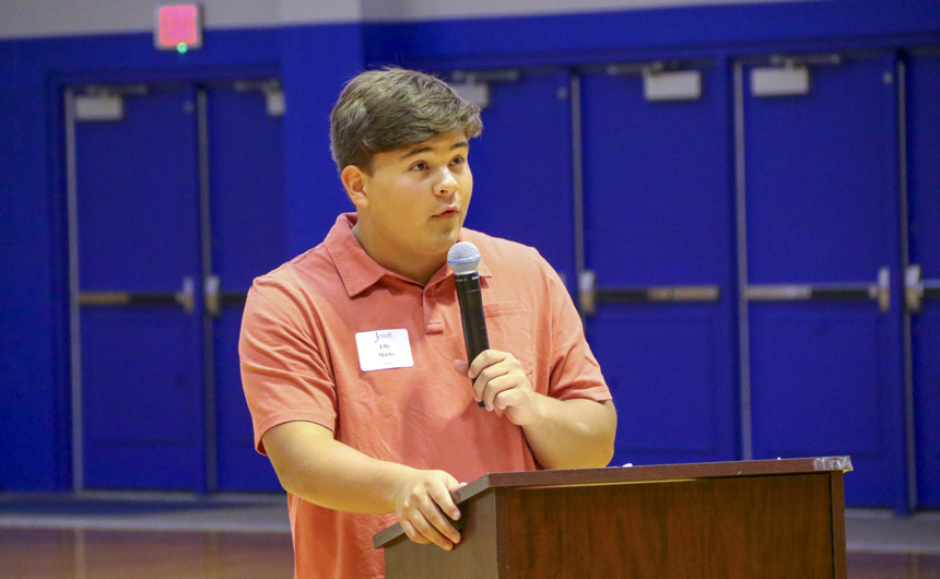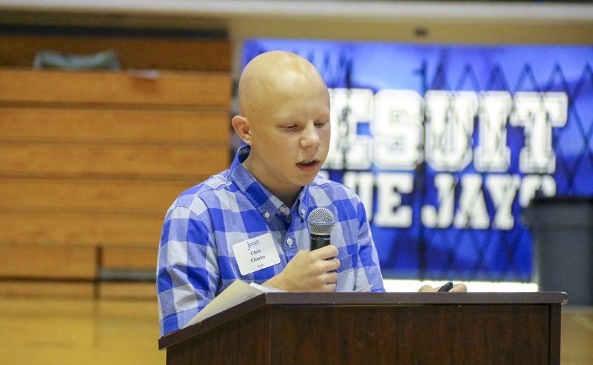 Admission director Bret Hanemann '85 speaks to new Blue Jays about the journey they begin as Jesuit students. -