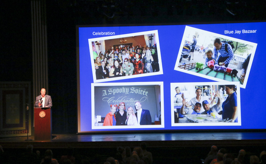 Parents then heard about the history of the high school, presented by alumni director Mat Grau ’68. School principal Peter Kernion ’90 then spent time giving an overview of many programs of formation at Jesuit. New parents then were presented with opportunities to meaningfully connect with Jesuit by the director for institutional advancement Tom Bagwill.
