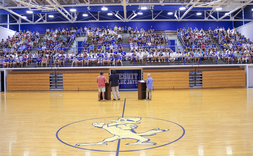 Meanwhile, new Blue Jays gathered in Benson Arena for a presentation on student life at Jesuit. -