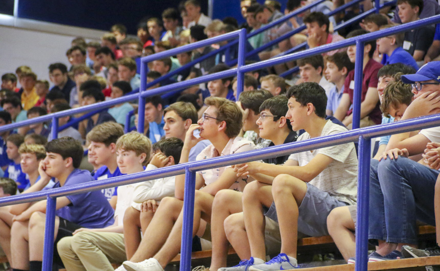 The program for both parents and students began in the Jesuit auditorium with words of welcome from admissions director Bret Hanemann ’85. Jesuit president Fr. Christopher Fronk, S.J., then spoke about the history of the Society of Jesus, touching on hallmark features of Jesuit education. Students were then dismissed to the newly-renovated gym, while their parents remained in the auditorium.