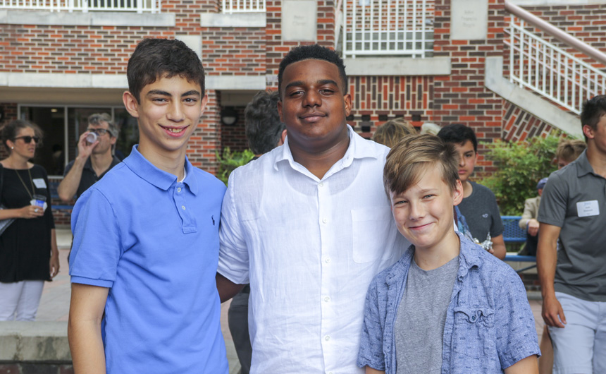 Junior Gentry Major welcomes his Little Brothers Gardner Ebrahim and Luke Fontenot at the Welcome Day reception in Traditions Courtyard.