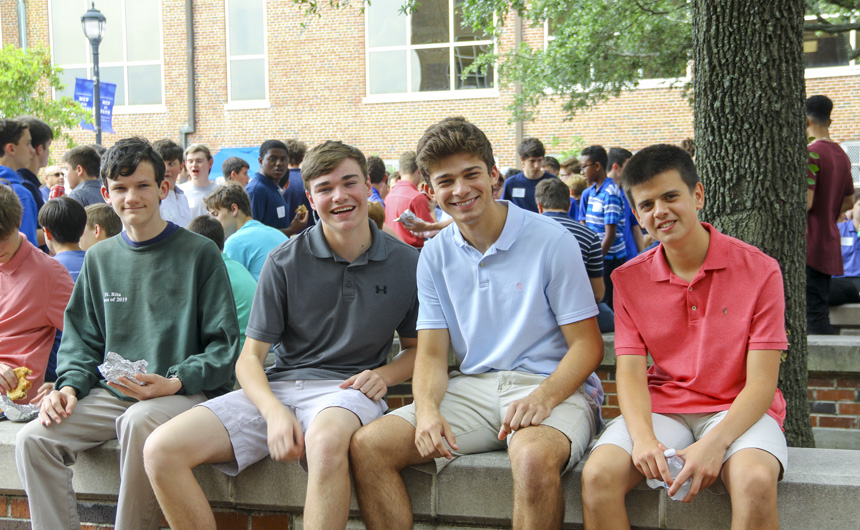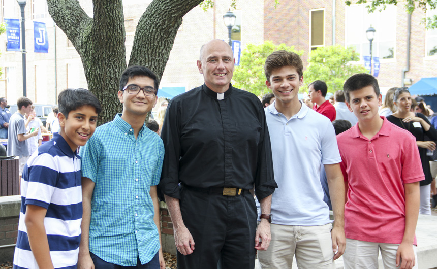 Welcome Day concluded with a reception for parents in the Student Commons and one for students in the Traditions Courtyard. Parents had a chance to mingle with other incoming parents and meet members of the school’s administration. In addition to being able to purchase Blue Jay clothing and spirit items from the Blue Jay shop, families were also given a complimentary copy of Gallant Fighting Sons, the book which chronicles the history of Jesuit. Parents also signed up with one of the many volunteer opportunities available to parents.