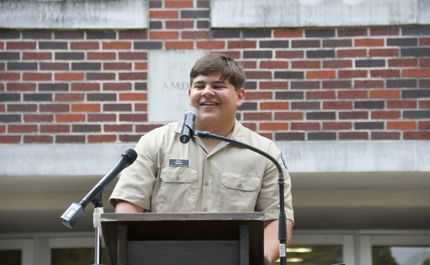 Before highlighting some of the ongoing capital projects around campus, Fr. Fronk rallied the crowd of students with his signature “Good morning!” welcome. After his subtle yet necessary start to his address, Fr. Fronk continued the trend of getting students involved in the spirit of Morning Assembly, a longstanding school tradition. He then stressed the importance of the school’s mission as more than something that is just written on a brochure, but rather as ideals to attain together as one student body. “I want us to be conscious about it this year, to really think about what it means to be a man of faith and a man for others. And remember, we do that together. It’s not a competition. We all want to succeed.”