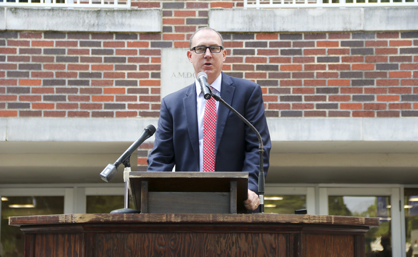 Mr. Peter Kernion '90, Jesuit's principal, encourages the student body to take advantage of the fresh start. -