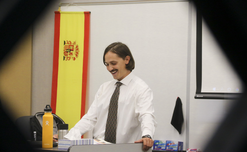 ...Spanish I teacher Mr. Scout Serpas ’13 calls roll. -