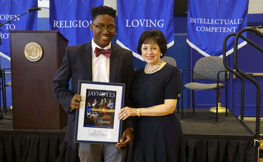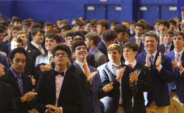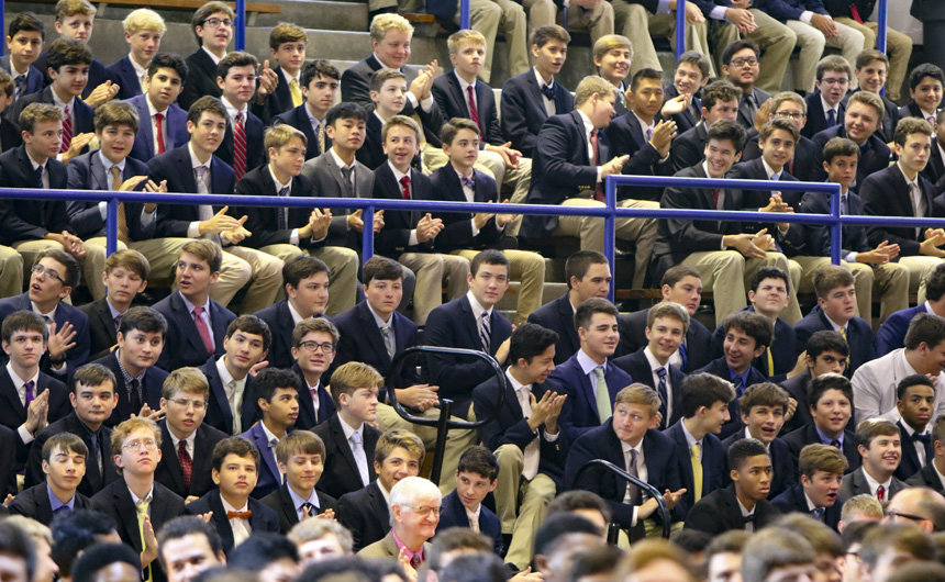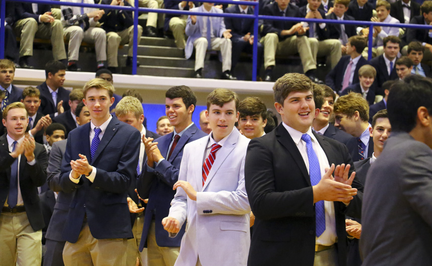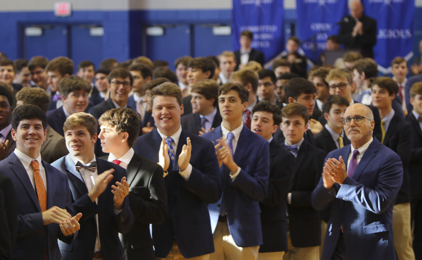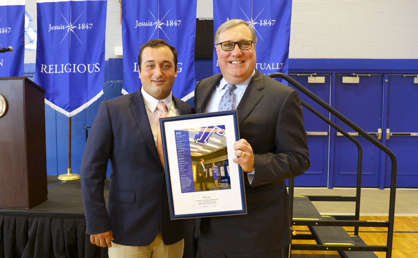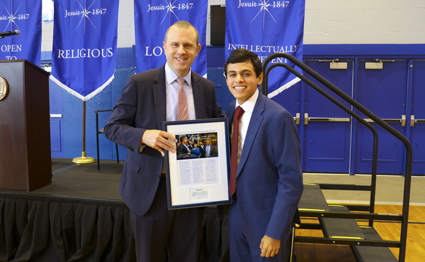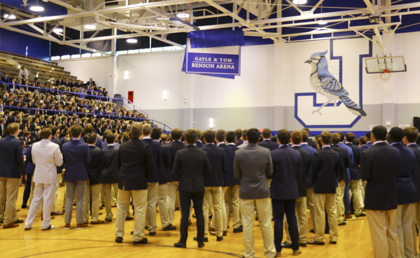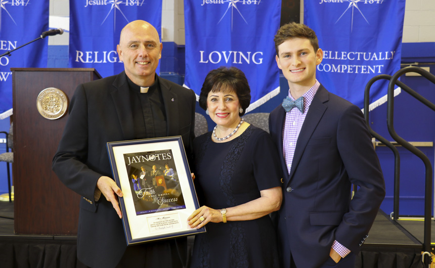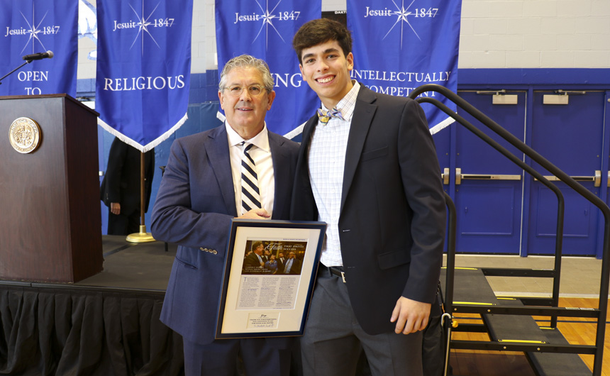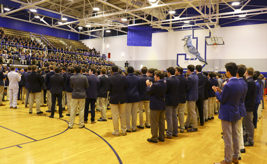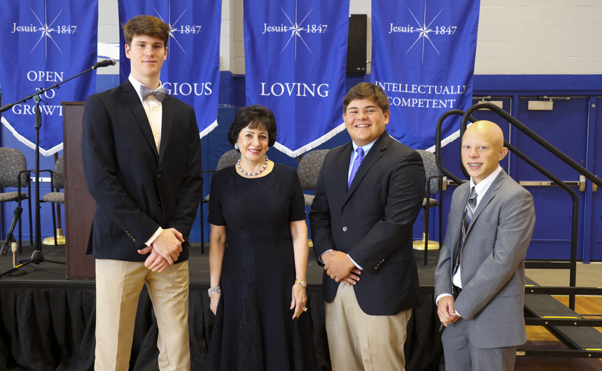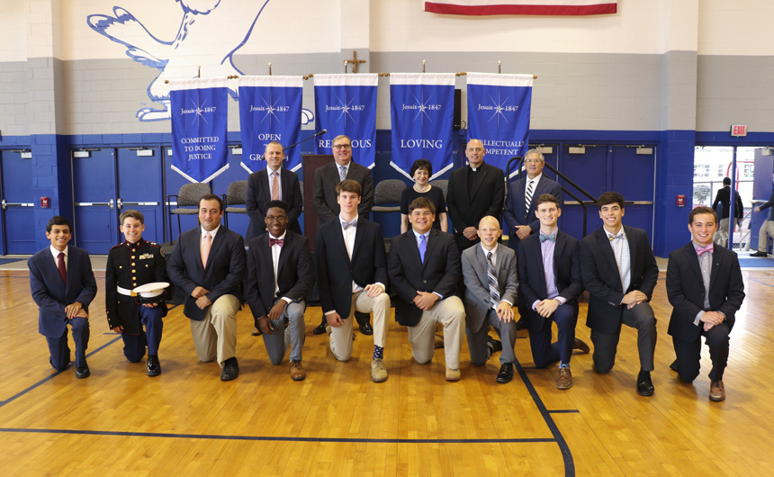 Students responded to Mrs. Benson’s message with warmth and deep Blue Jay spirit. The ceremony concluded with a presentation of plaques to the special guests, thanking them for all of the wonderful ways they support Jesuit’s mission.