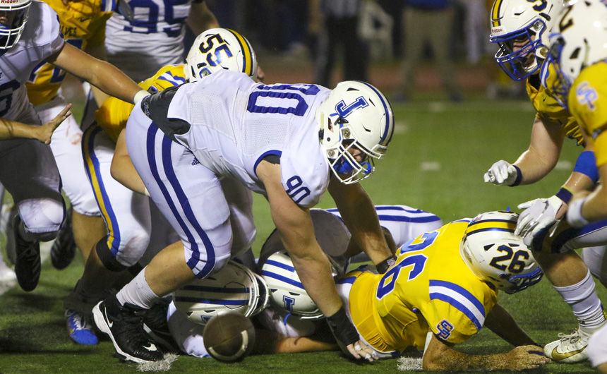 The Jesuit Blue Jay football team showed heart in the fourth quarter of Friday’s game at St. Paul’s Hunter Field, but the Jays’ comeback would end a field goal short as they fell to the Wolves, 19-16.