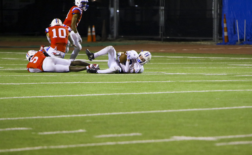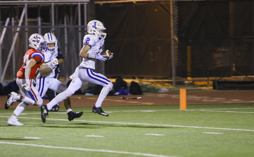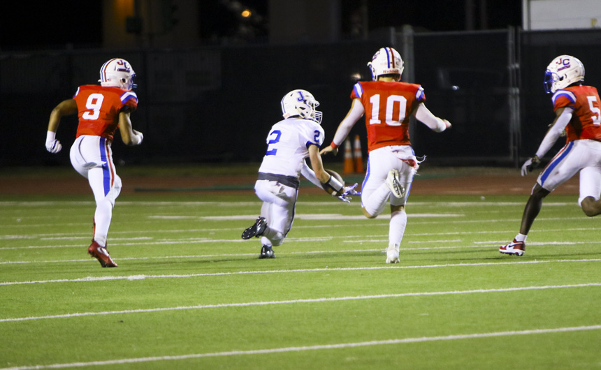 Late in the fourth quarter, Jesuit’s defense stopped the Patriots again. The Jays then traveled quickly into the red zone but settled with a 31-yard Aidan Corbello field goal. The offense had one last chance at Curtis’ 39-yard line with 14 seconds remaining when Curtis guaranteed the victory by intercepting a Hail Mary pass toward the corner of the end zone.