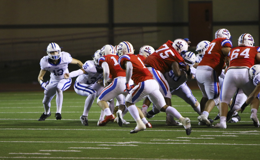 A play later, quarterback Grant Jordan threw a deep fly route to receiver and fellow senior Grant Moreau, who caught the ball and ran nine yards into the end zone for his second touchdown of the evening and Jordan’s third. The 46-yard touchdown catch was the biggest play in the best game of Moreau’s high school career. Moreau and Luke LaForge each caught 7-yard touchdowns in the first half.